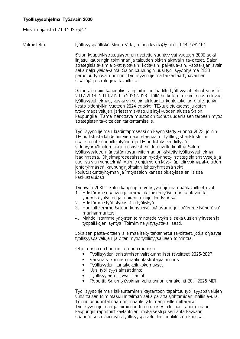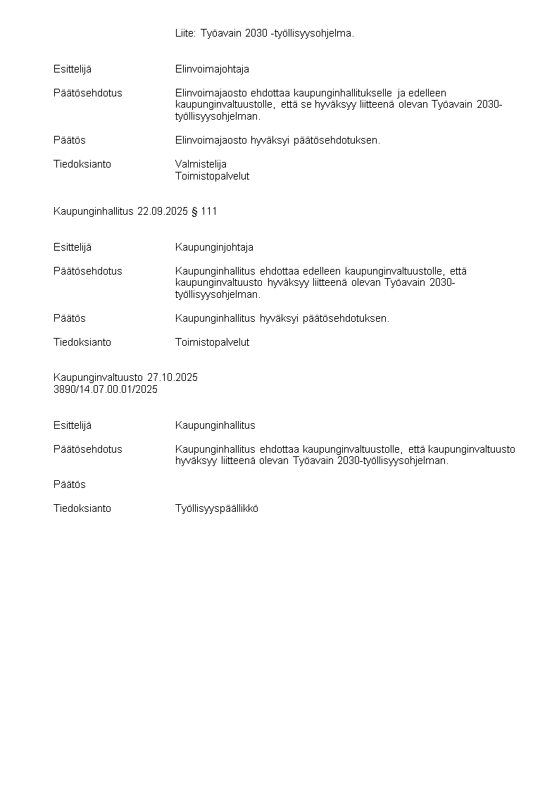 Liite 17 Työavain 2030 -työllisyysohjelma