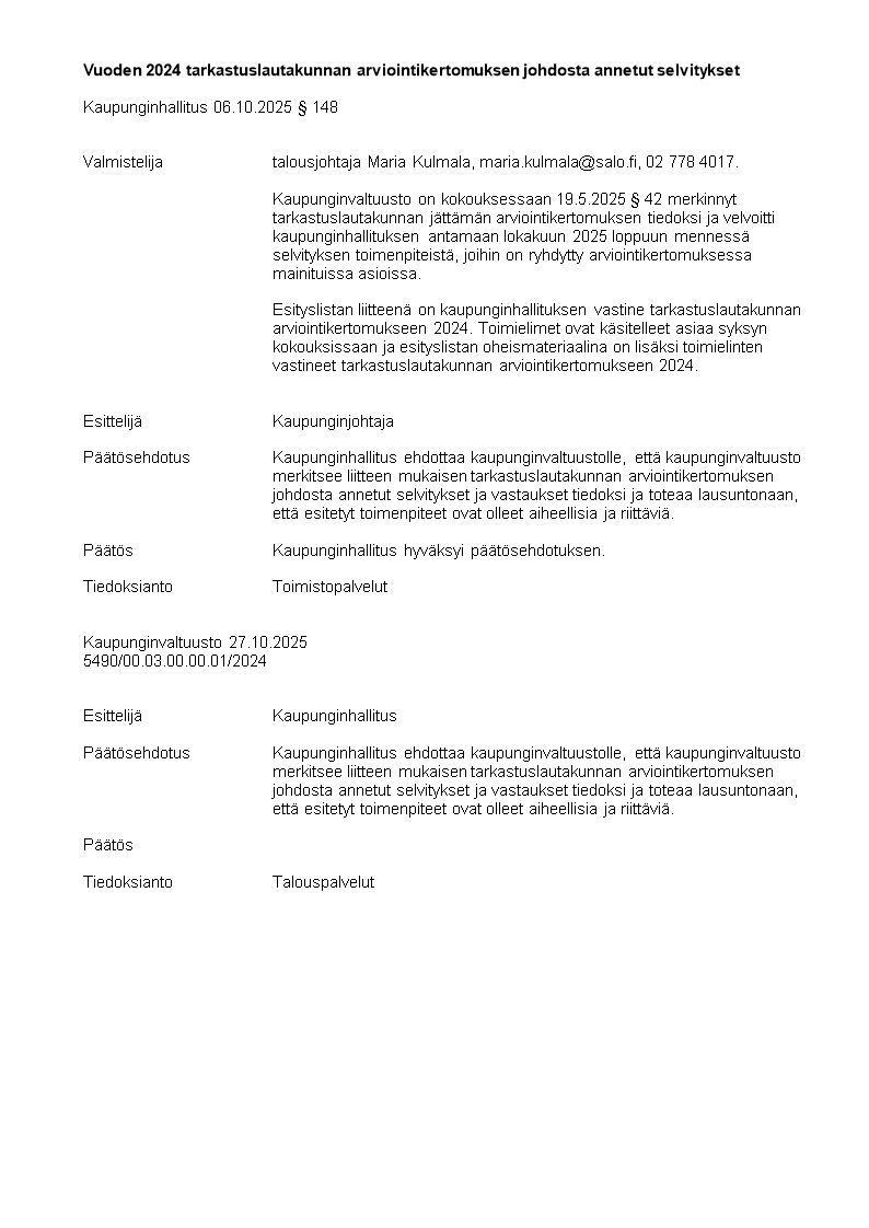 Liite 1 Vastineet vuoden 2024 arviointikertomukseen