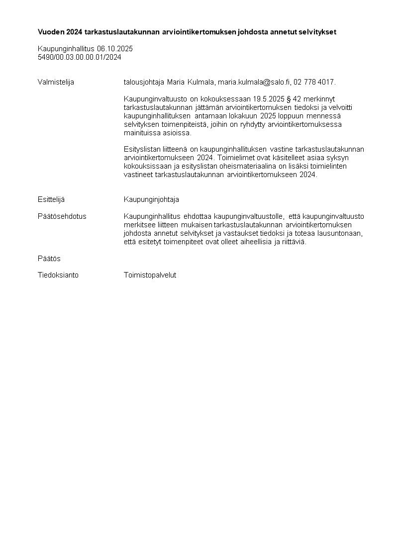 Liite 9 Vastineet vuoden 2024 arviointikertomukseen