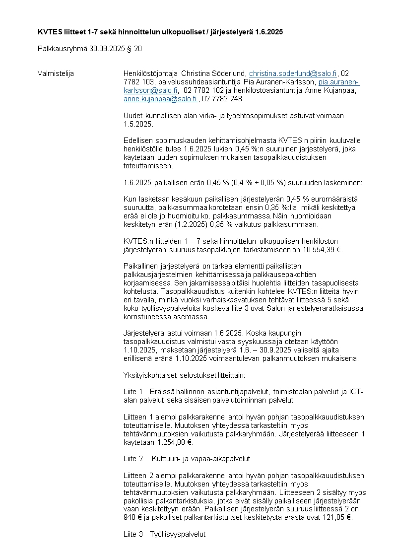 Liite 1 Palkkataulukko KVTES 1.6.2025