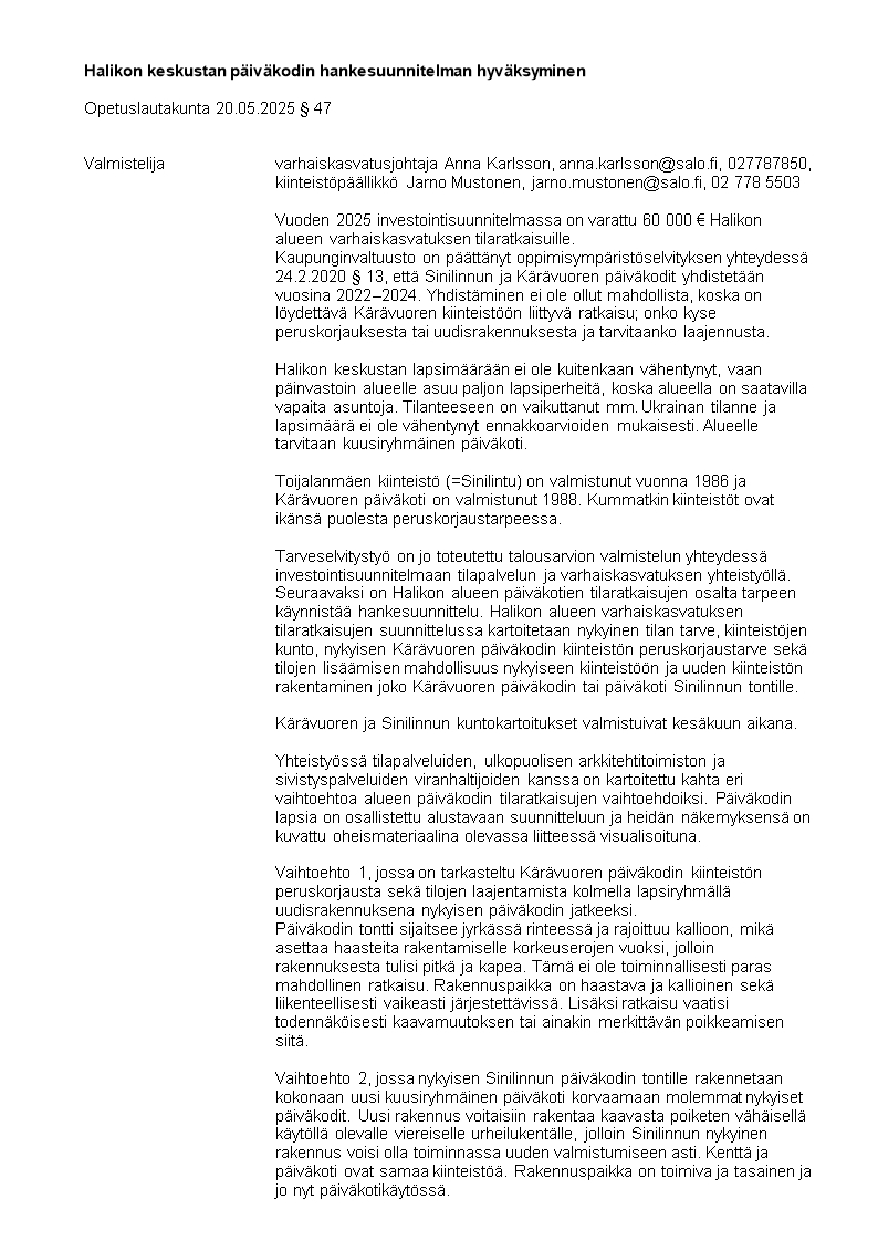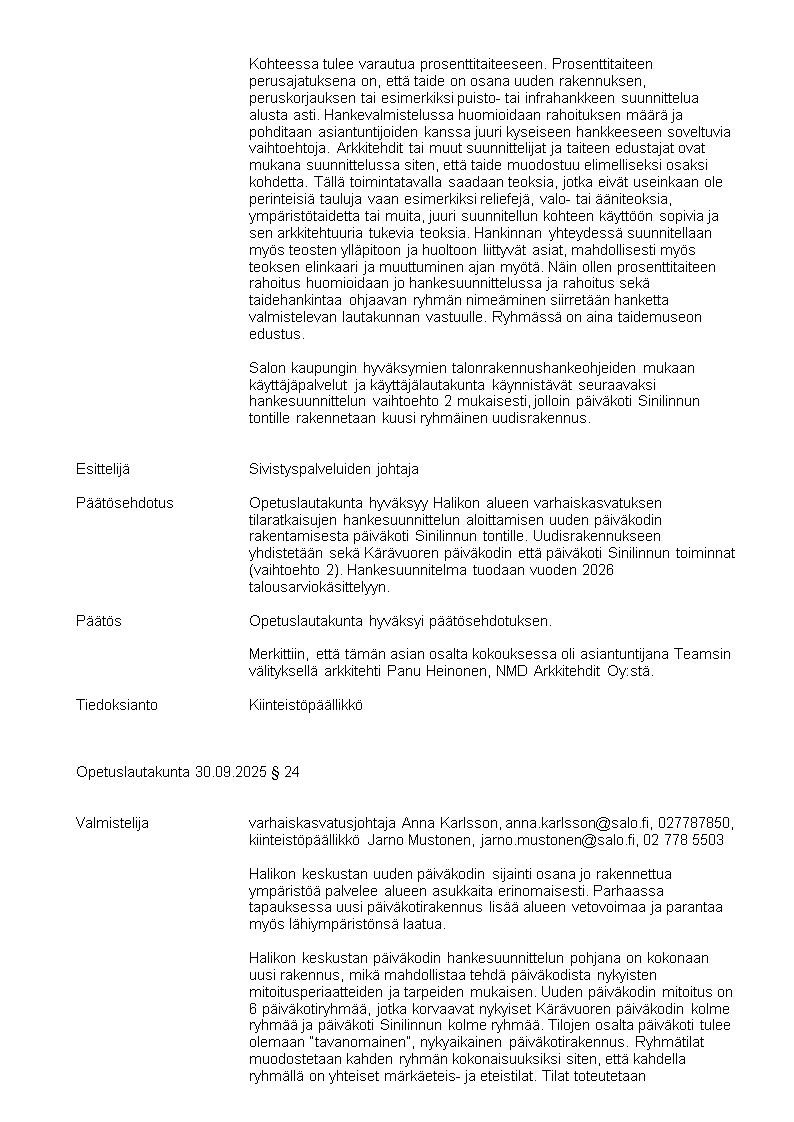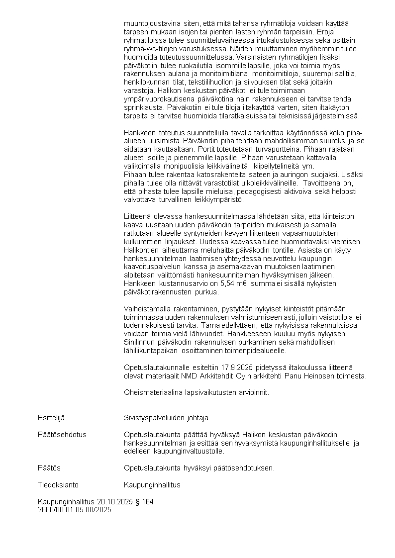 Pöytäkirja 20.10.2025/Pykälä 164