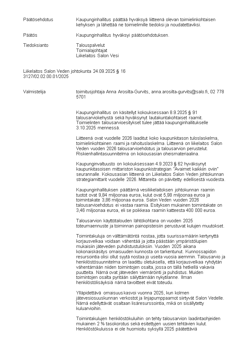Pöytäkirja 24.09.2025/Pykälä 16