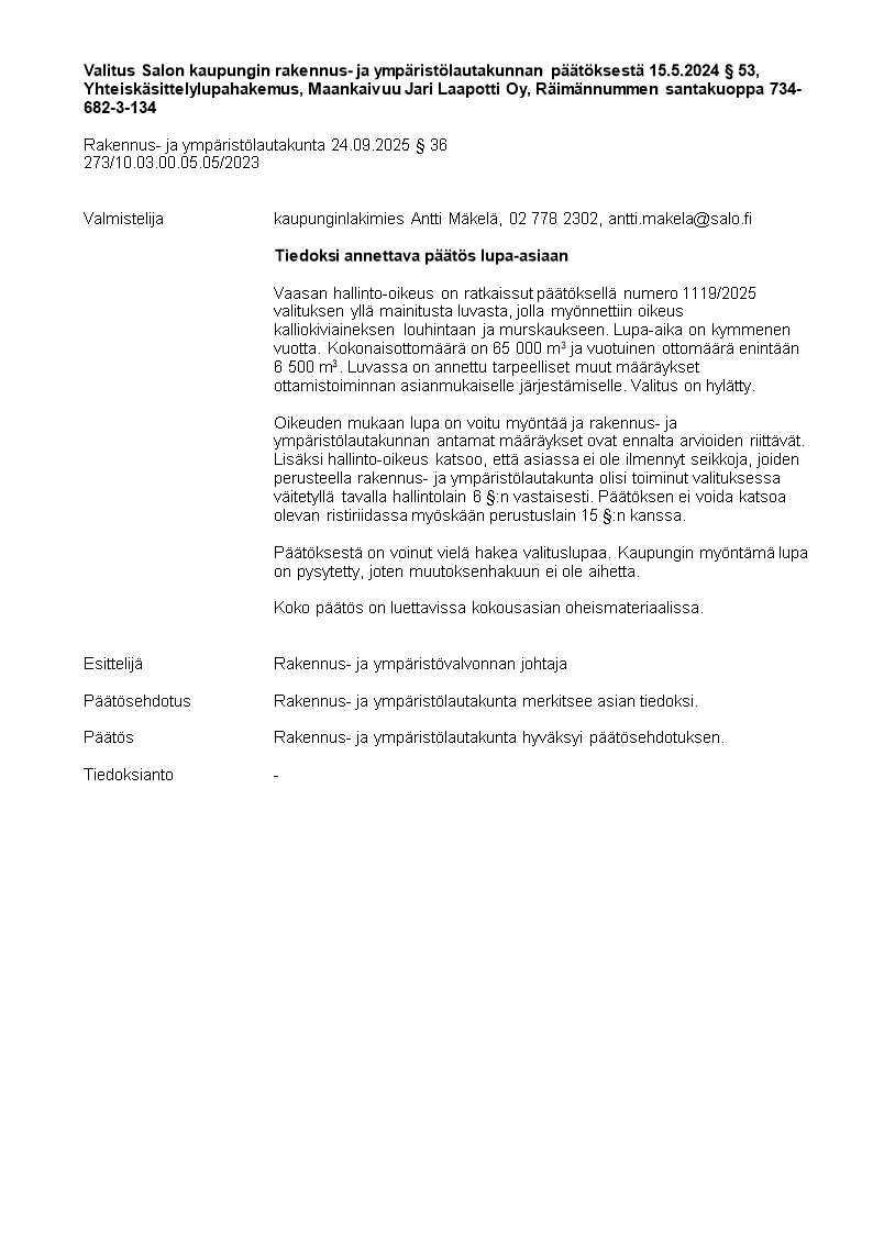 Pöytäkirja 24.09.2025/Pykälä 36