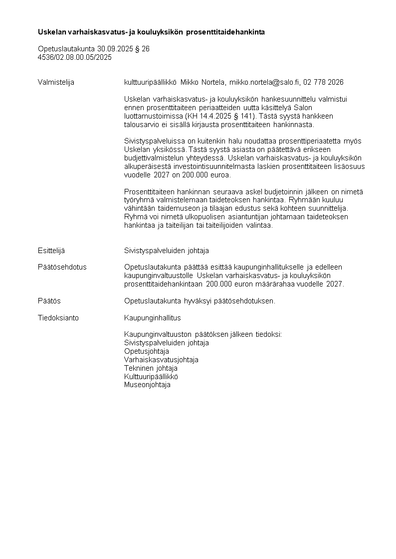 Pöytäkirja 30.09.2025/Pykälä 26