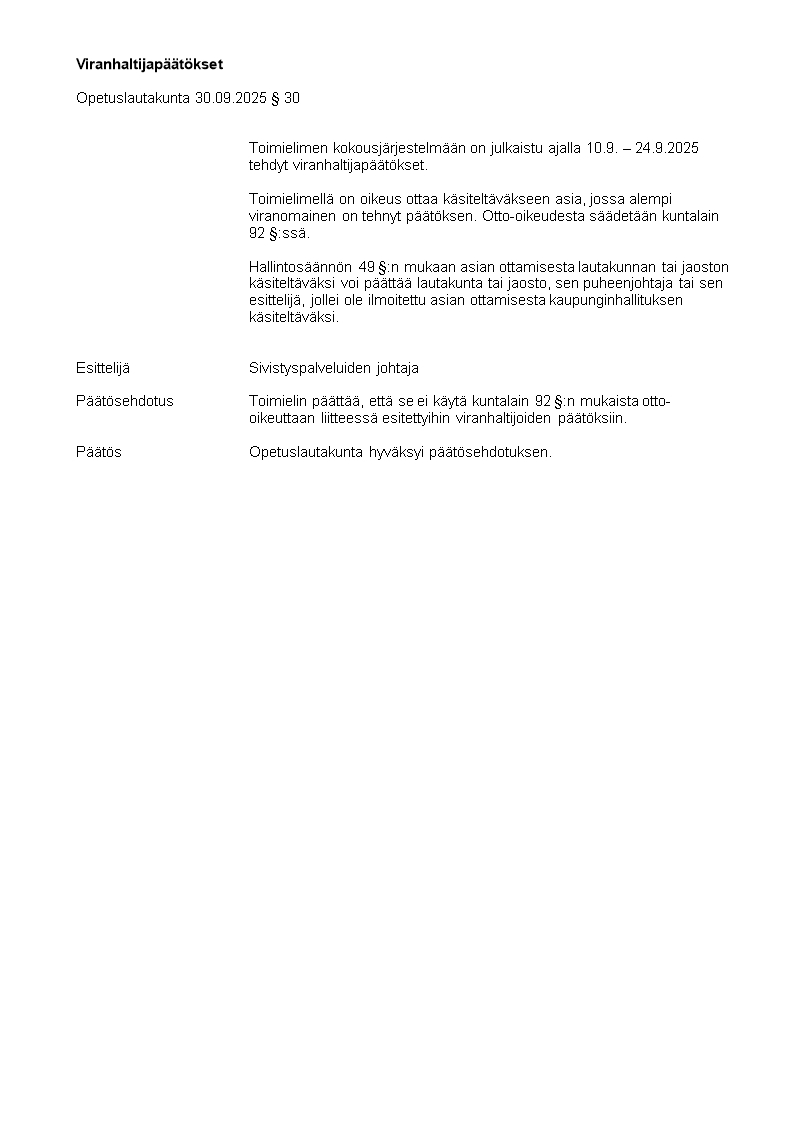 Pöytäkirja 30.09.2025/Pykälä 30