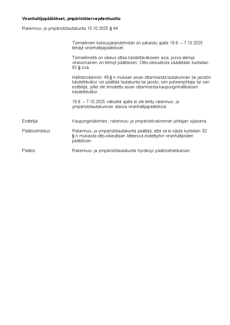 Pöytäkirja 15.10.2025/Pykälä 44