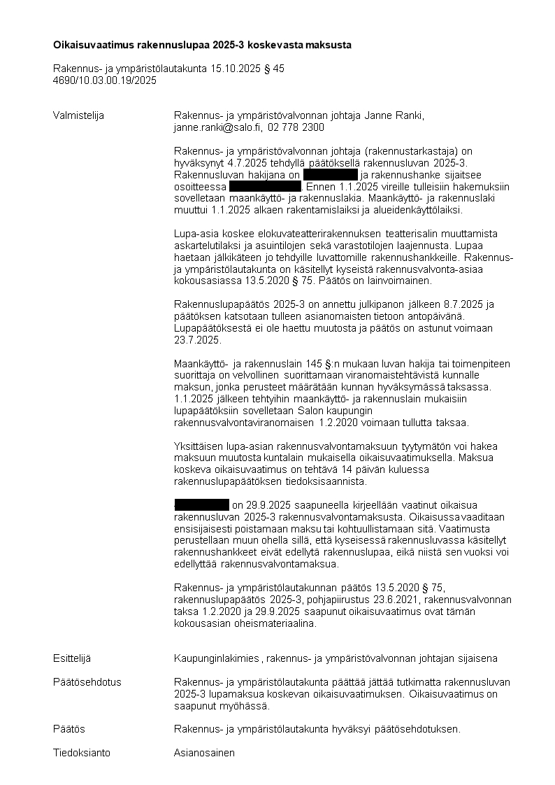 Pöytäkirja 15.10.2025/Pykälä 45