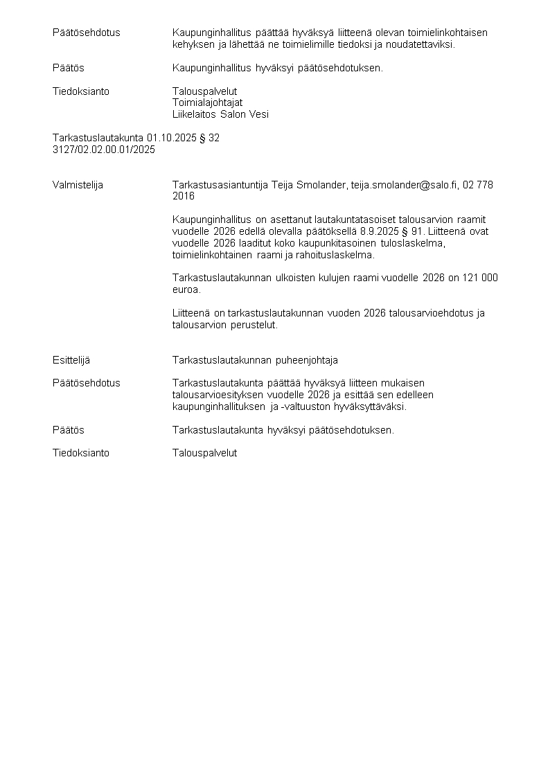 Pöytäkirja 01.10.2025/Pykälä 32