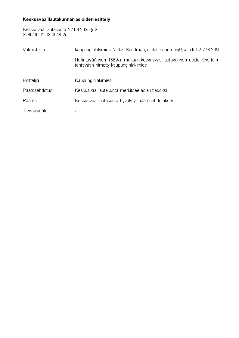 Pöytäkirja 22.09.2025/Pykälä 2